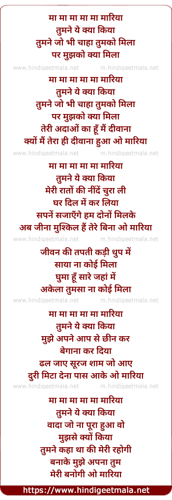 Lyrics of Mariya - मा मा मा मा मा मारिया