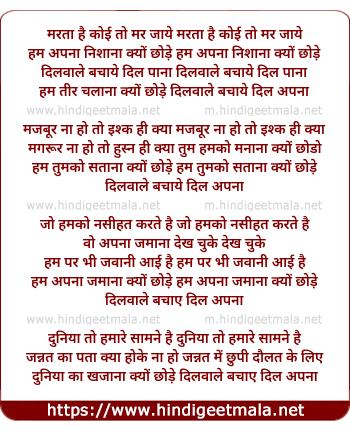 Lyrics of Marta Hai Koi To Mar Jaaye - मरता है कोई तो मर जाये
