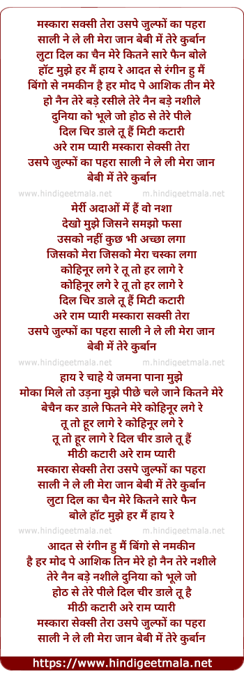 Lyrics of Maskara Sexy Tera Uspe Julfo Ka Pehra - मस्कारा सक्सी तेरा उसपे जुल्फों का पहरा