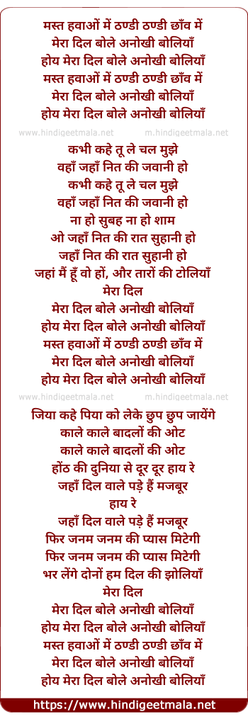Lyrics of Mast Hawao Me Thandi Chanv Me - मस्त हवाओं में ठण्डी छाँव में