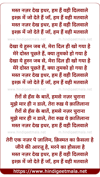 Lyrics of Mast Najar Dekh Idhar - मस्त नज़र देख इधर