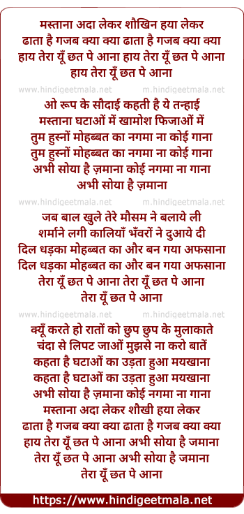 Lyrics of Mastana Ada Lekar - मस्ताना अदा लेकर