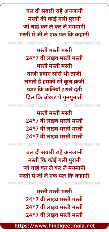 Lyrics of Masti Masti Masti - मस्ती मस्ती मस्ती
