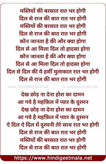 Lyrics of Mastiyo Ki Barsat Raat Bhar Hogi - मस्तियों की बरसात रात भर होगी