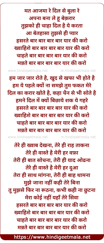 Lyrics of Mat Aazma Re - मत आजमा रे