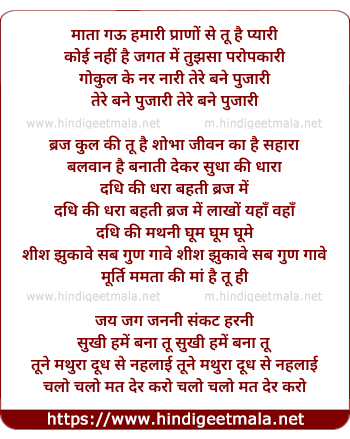 Lyrics of Mata Gau Hamari Prano Se Tu Hai Pyari - माता गऊ हमारी प्राणों से तू है प्यारी