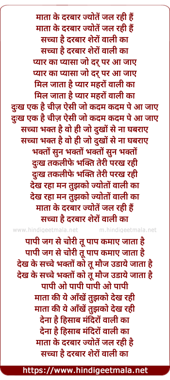 Lyrics of Mata Ke Darbaar Jyote Jal Rahi Hai - माता के दरबार ज्योतें जल रही हैं