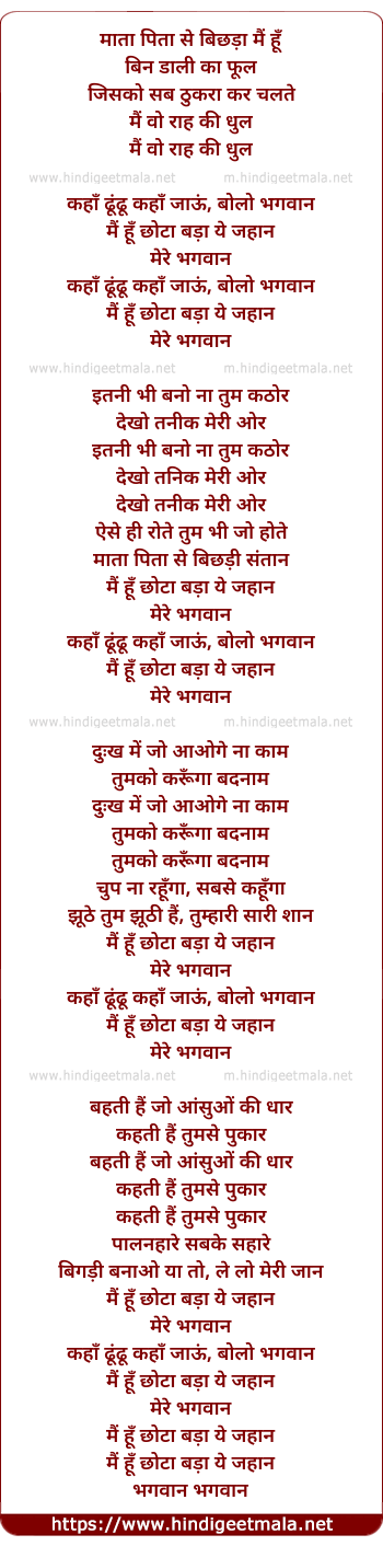 Lyrics of Mata Pita Se Bichhda Hu Mai - माता पिता से बिछड़ा हूँ मैं