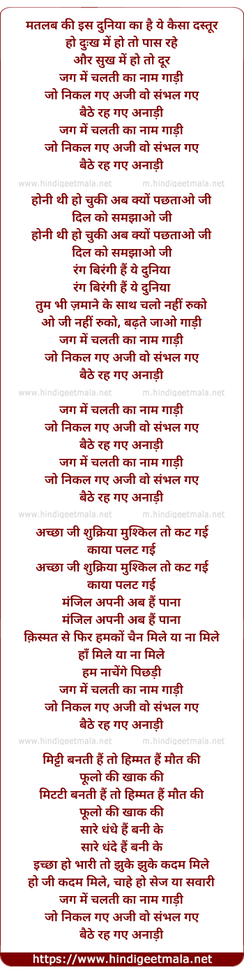 Lyrics of Matlab Ki Is Duniya Ka Hai Ye Kaisa - मतलब की इस दुनिया का है ये कैसा