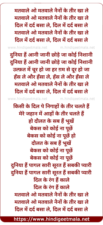 Lyrics of Matwale O Matwale Naino Ke Teer - मतवाले ओ मतवाले नैनों के तीर