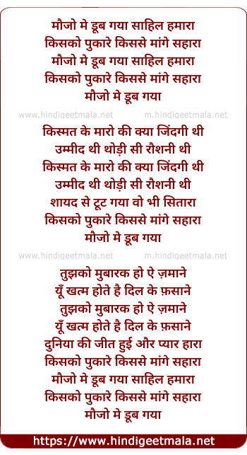 Lyrics of Maujo Me Dub Gaya Sahil Hamara - मौजो मे डूब गया साहिल हमारा