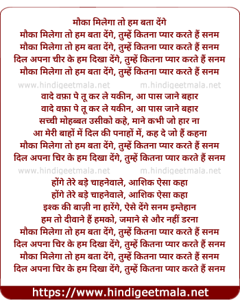Lyrics of Mauka Milega Toh Ham Bata Denge - मौका मिलेगा तो हम बता देंगे