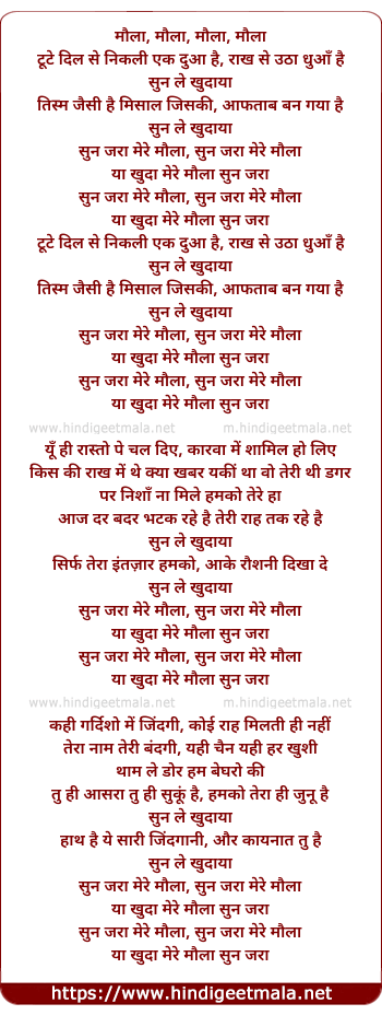 Lyrics of Sun Jara Mere Maula - सुन जरा मेरे मौला