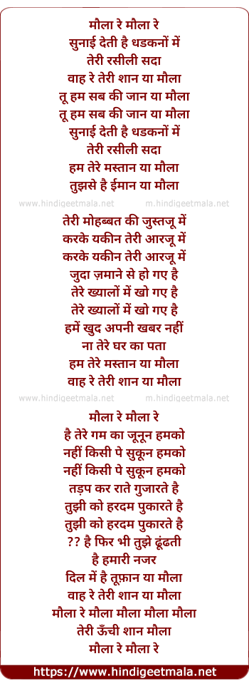 Lyrics of Maula Re, Maula Re - मौला रे, मौला रे