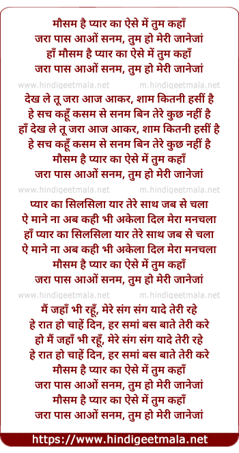 Lyrics of Mausam Hai - मौसम है प्यार का ऐसे में तुम कहाँ