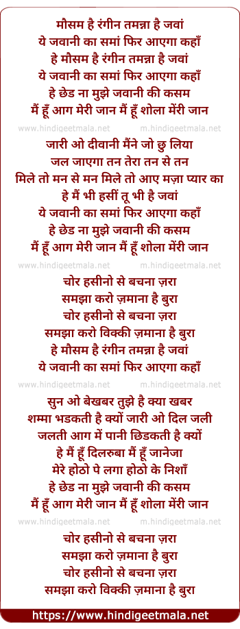 Lyrics of Mausam Hai Rangin, Tamanna Hai Jawaan - मौसम है रंगीन, तमन्ना है जवां