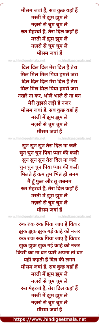 Lyrics of Mausam Jawan Hai Sab Kuch Yaha Hai - मौसम जवां हैं, सब कुछ यहाँ हैं