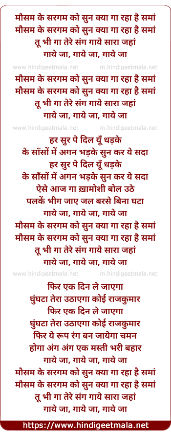 Lyrics of Mausam Ke Sargam Ko Sun Kya Ga Raha Hai Sama - मौसम के सरगम को सुन क्या गा रहा है समां