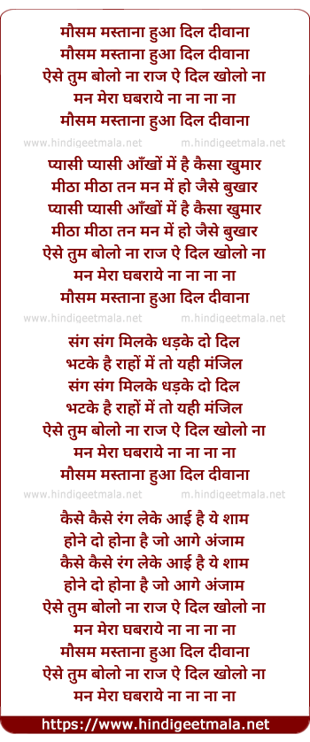 Lyrics of Mausam Mastaana Hua Dil Deewana - मौसम मस्ताना हुआ दिल दीवाना