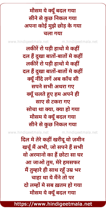 Mausam Ye Kyu Badal Gayaa - मौसम ये क्यूँ बदल गया