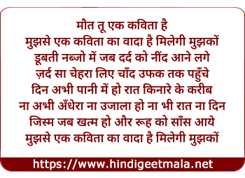 Lyrics of Maut Tu Ek Kavitaa Hai - मौत तू एक कविता है