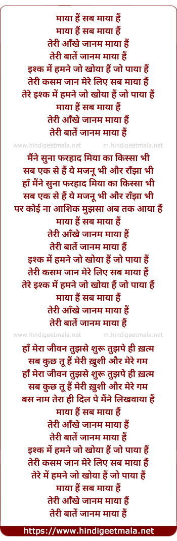 Lyrics of Maya Hai Sab Maya Hai - माया हैं सब माया हैं