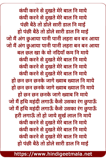 Lyrics of Maa Ae Kanghi Karne Se - माँ ऐ कंघी करने से