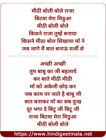 Lyrics of Meethi Boli Bole Raja - मीठी बोली बोले राजा