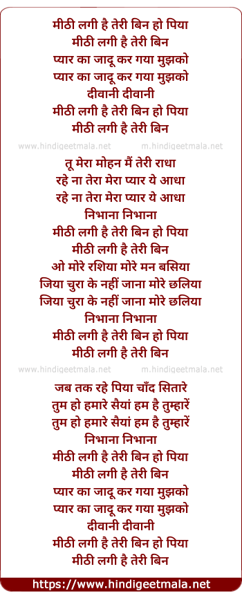Lyrics of Meethi Lagi Hai Teri Been - मीठी लगी है तेरी बिन