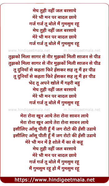 Lyrics of Megh Tu Hi Nahi Jal Barsaye - मेघ तुही नहीं जल बरसाये