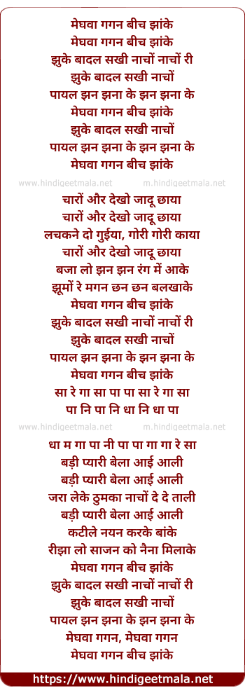 Lyrics of Meghava Gagan Bich Jhanke - मेघवा गगन बीच झांके