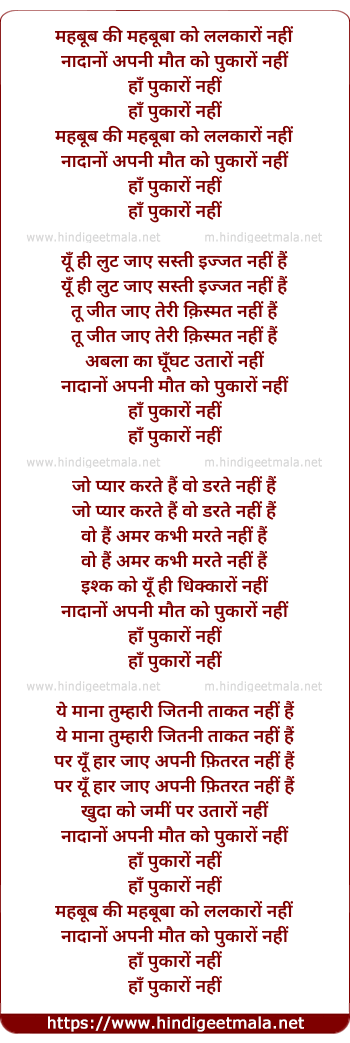Lyrics of Mehboob Ki Mehbooba - महबूब की महबूबा