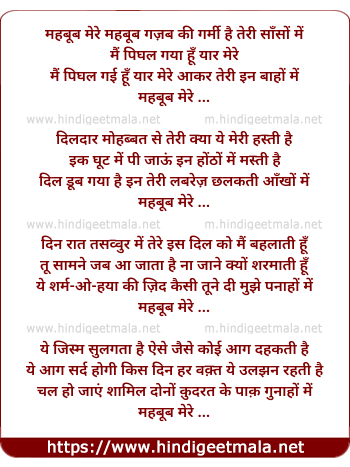 Lyrics of Mehboob Mere Mehboob - महबूब मेरे महबूब गज़ब की गर्मी है तेरी साँसों में