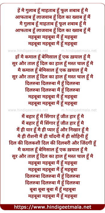 Lyrics of Mehbooba Dilruba - महबूबा दिलरुबा
