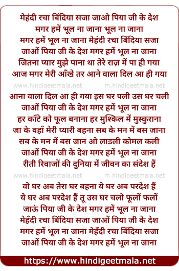 Lyrics of Mehendi Raccha Bindiya Saja - मेहंदी रचा बिंदिया सजा