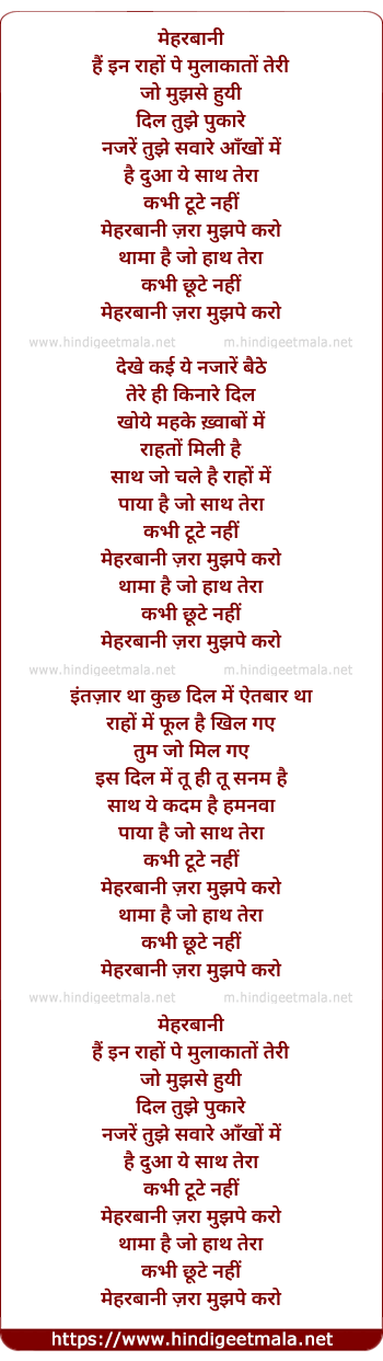 Lyrics of Meherbaani - मेहरबानी