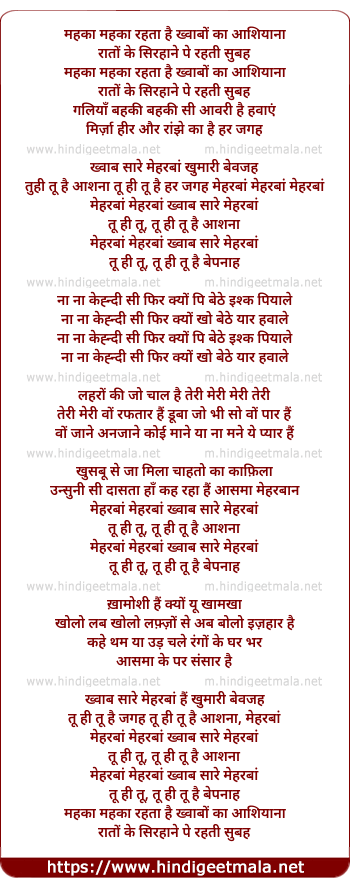 Lyrics of Meherban Meherban Khaab Saare Meherban - मेहरबां मेहरबां ख्वाब सारे मेहरबां