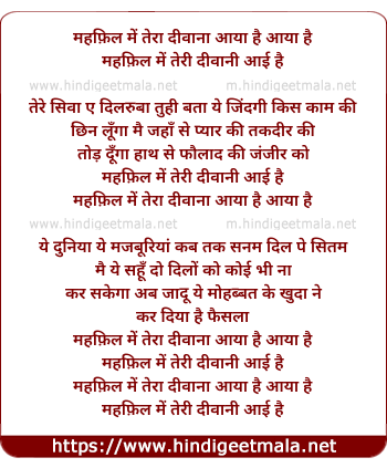 Lyrics of Mehfil Me Tera Deewana Aaya - महफ़िल में तेरा दीवाना आया