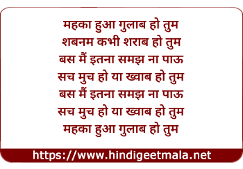 Lyrics of Mehka Hua Gulab Ho Tum - महका हुआ गुलाब हो तुम