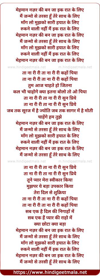 Lyrics of Mehman Nazar Ki Ban Ja - मेहमान नज़र की बन जा