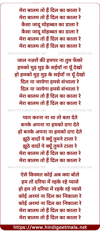 Lyrics of Mera Balam To Hai Dil Ka Kala - मेरा बालम तो हैं दिल का काला