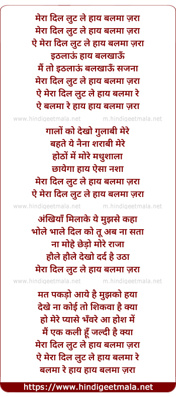 Lyrics of Mera Dil Loot Le - मेरा दिल लुट ले