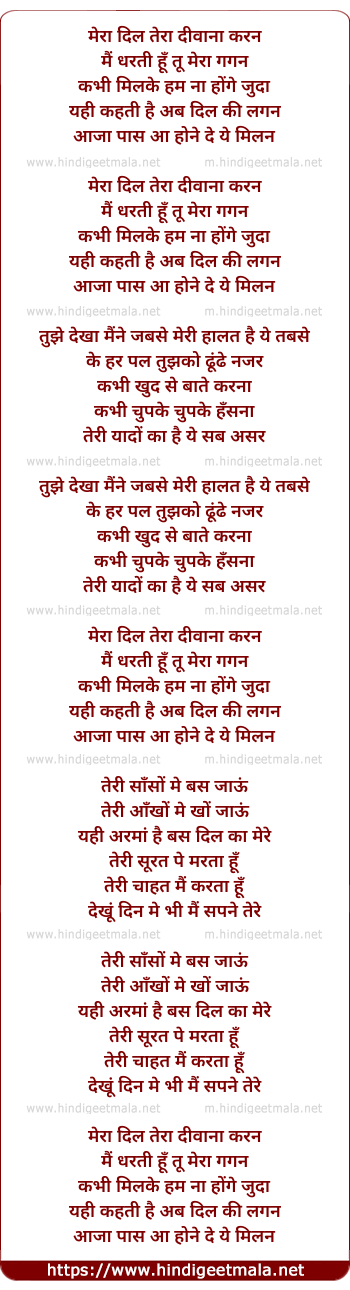 Lyrics of Mera Dil Tera Deewana - मेरा दिल तेरा दीवाना