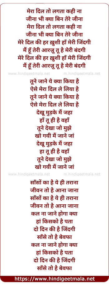 Lyrics of Mera Dil To Lagta Kahin Na - मेरा दिल तो लगता कही ना