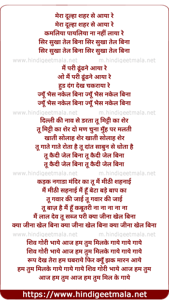 Lyrics of Mera Dulha Shehar Se Aaya Re - मेरा दूल्हा शहर से आया रे