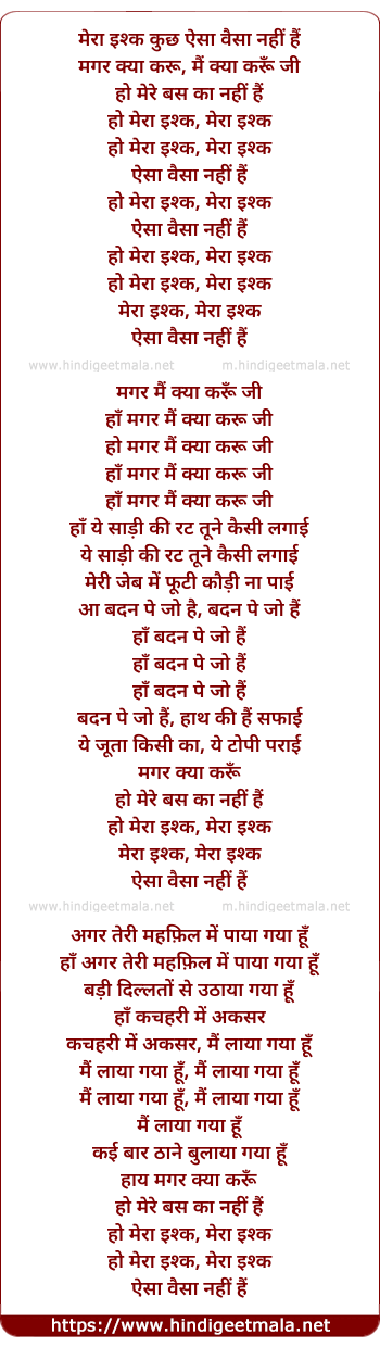 Lyrics of Mera Ishq Kuch Aisa Nahi Hai - मेरा इश्क कुछ ऐसा वैसा नहीं हैं