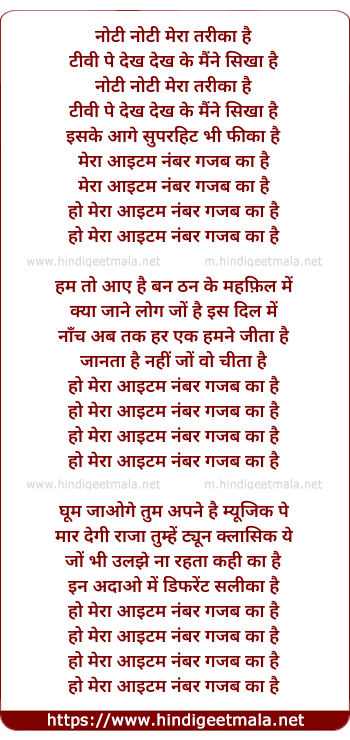 Lyrics of Mera Item No. Ghazab Ka Hai - नोटी नोटी मेरा तरीका है