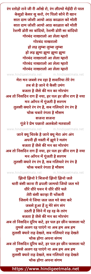 Lyrics of Mera Man Jabse Racha Hai - मेरा मन जबसे रचा है