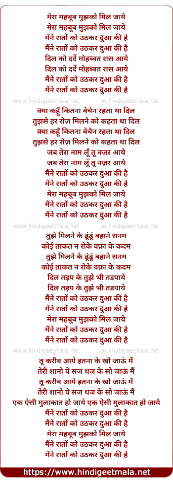 Meraa Mehboob Mujhko Mil Jaye - मेरा महबूब मुझको मिल जाये