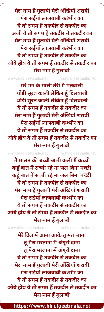 Lyrics of Mera Naam Hai Gulabi, Meri Aankhiya Sharabi - मेरा नाम हैं गुलाबी, मेरी अँखियाँ शराबी